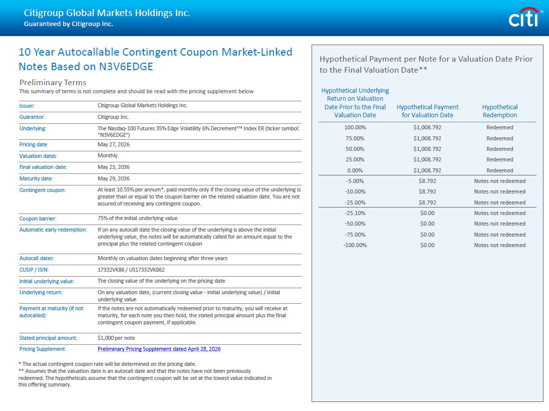 | 1 | OFFERING SUMMARY | FWP | 9.4 KB | Open in viewerDownload |