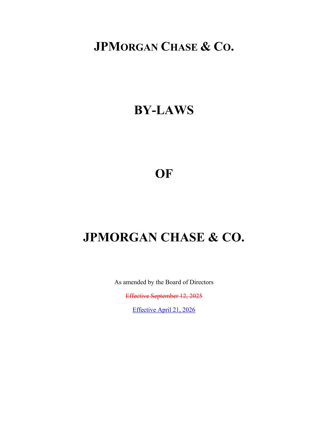 | 2 | BY-LAWS OF JPMORGAN CHASE & CO., AS AMENDED, EFFECTIVE APRIL 21, 2026 | EX-3.2 | 159.1 KB | Open in viewerDownload |