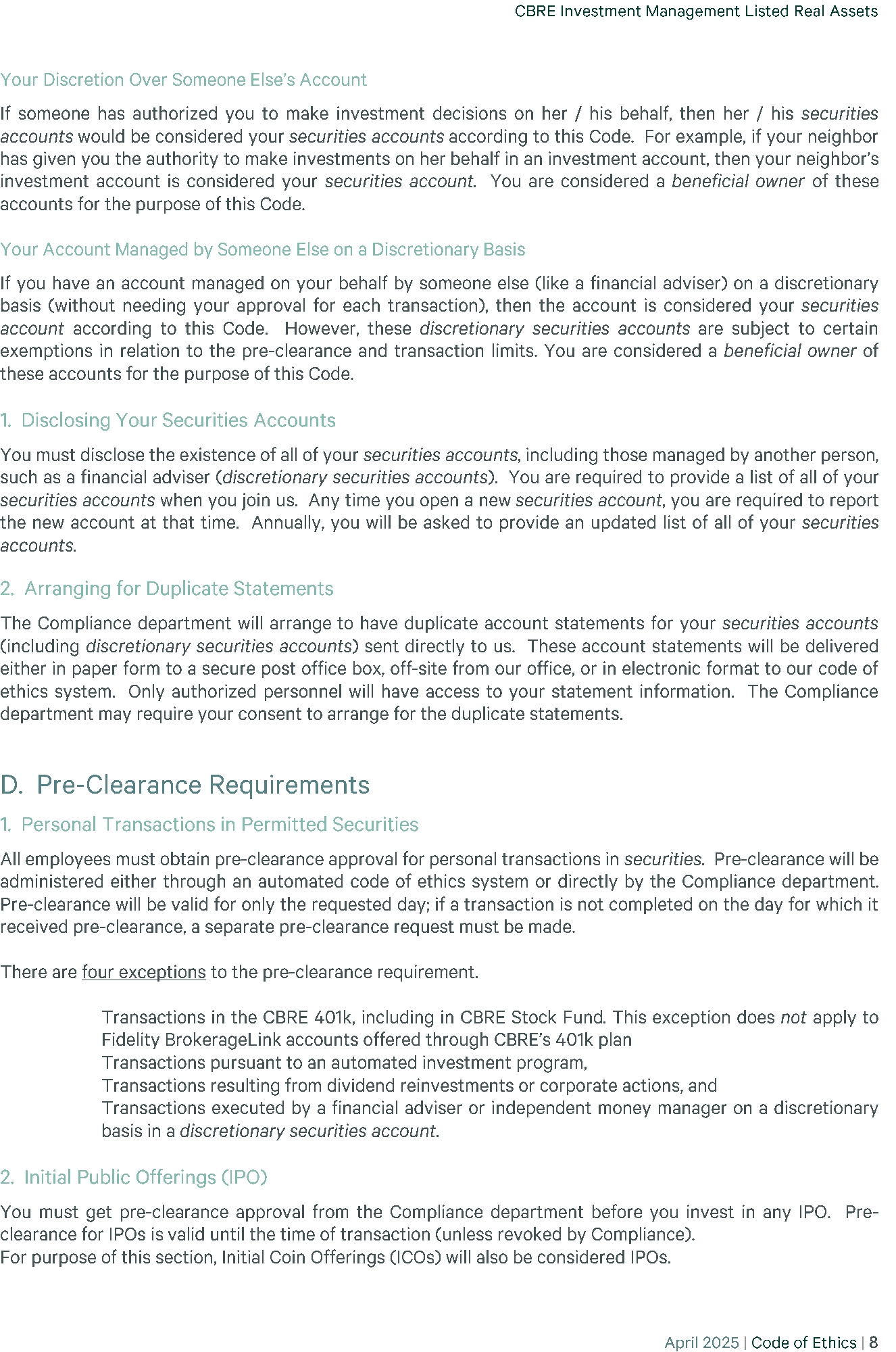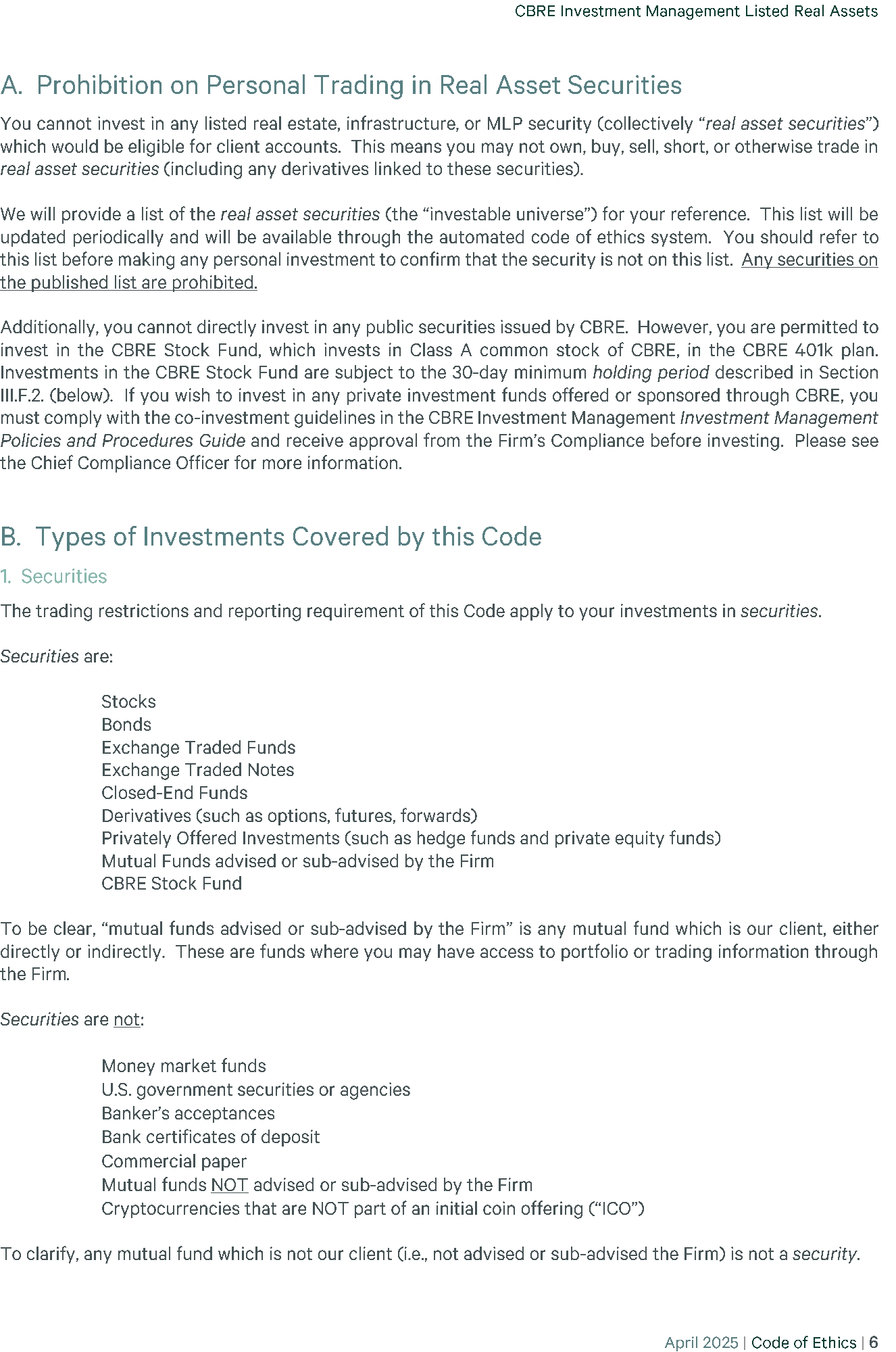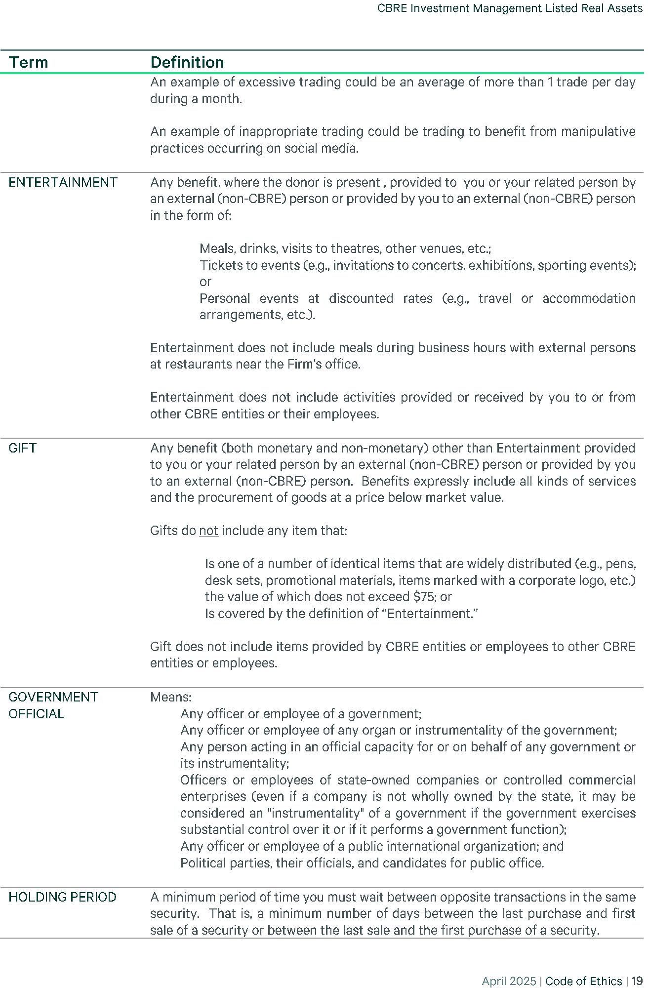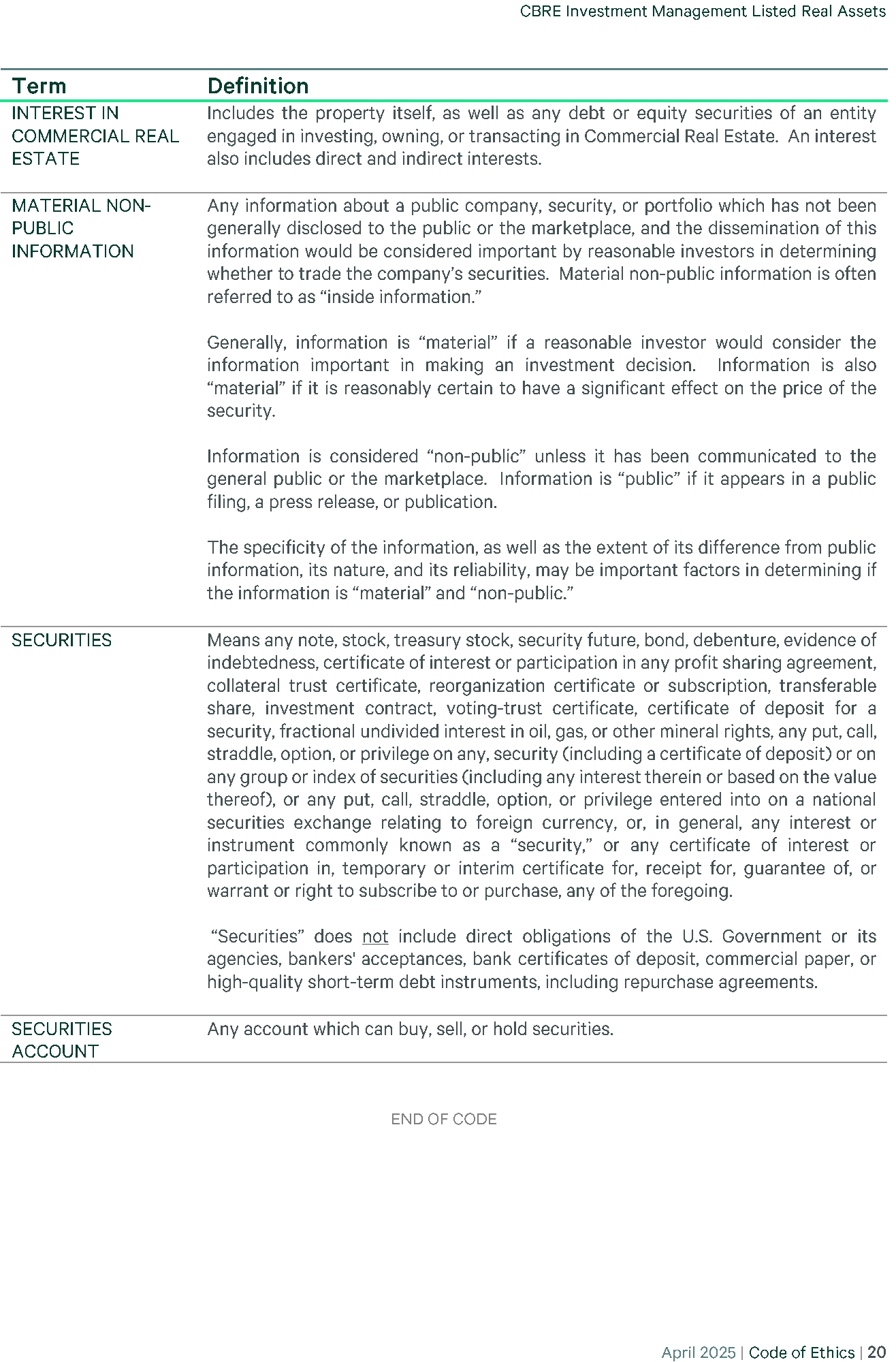 | 23 | (P)(2) CBRE - CODE OF ETHICS 2025-04 | EX-99 | 35.8 KB | Open in viewerDownload |