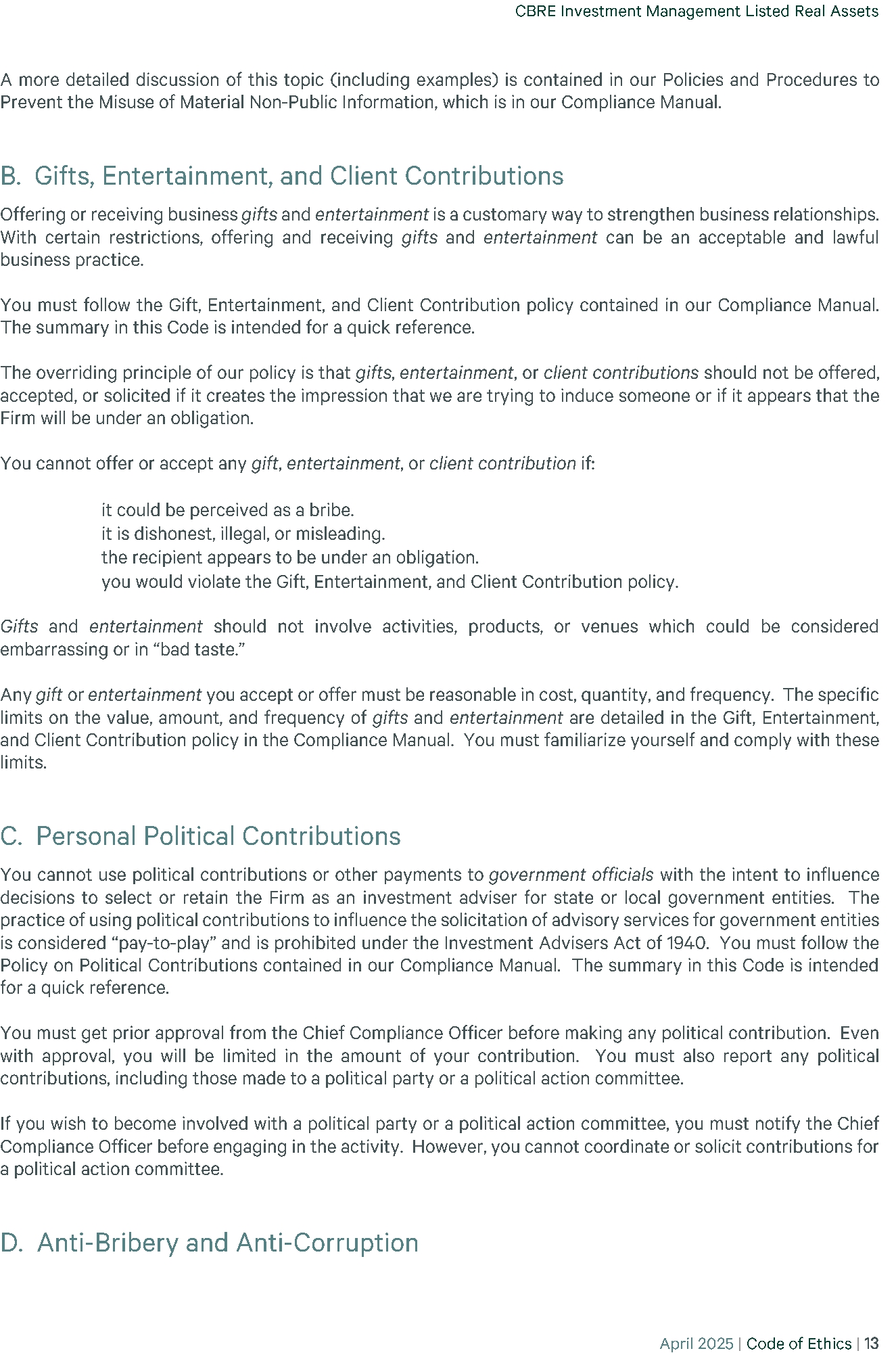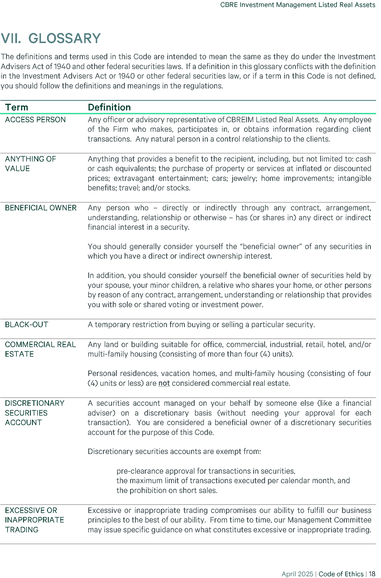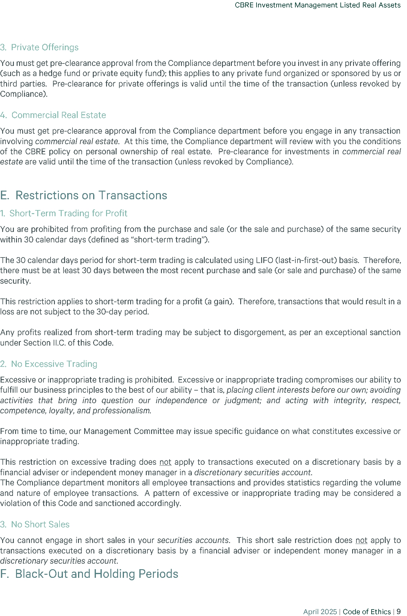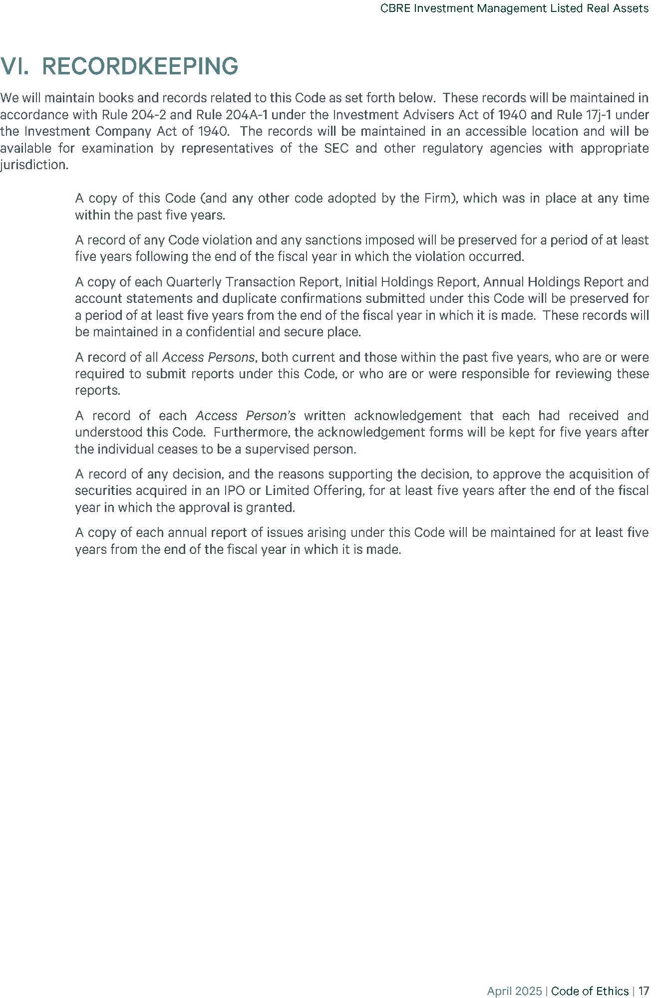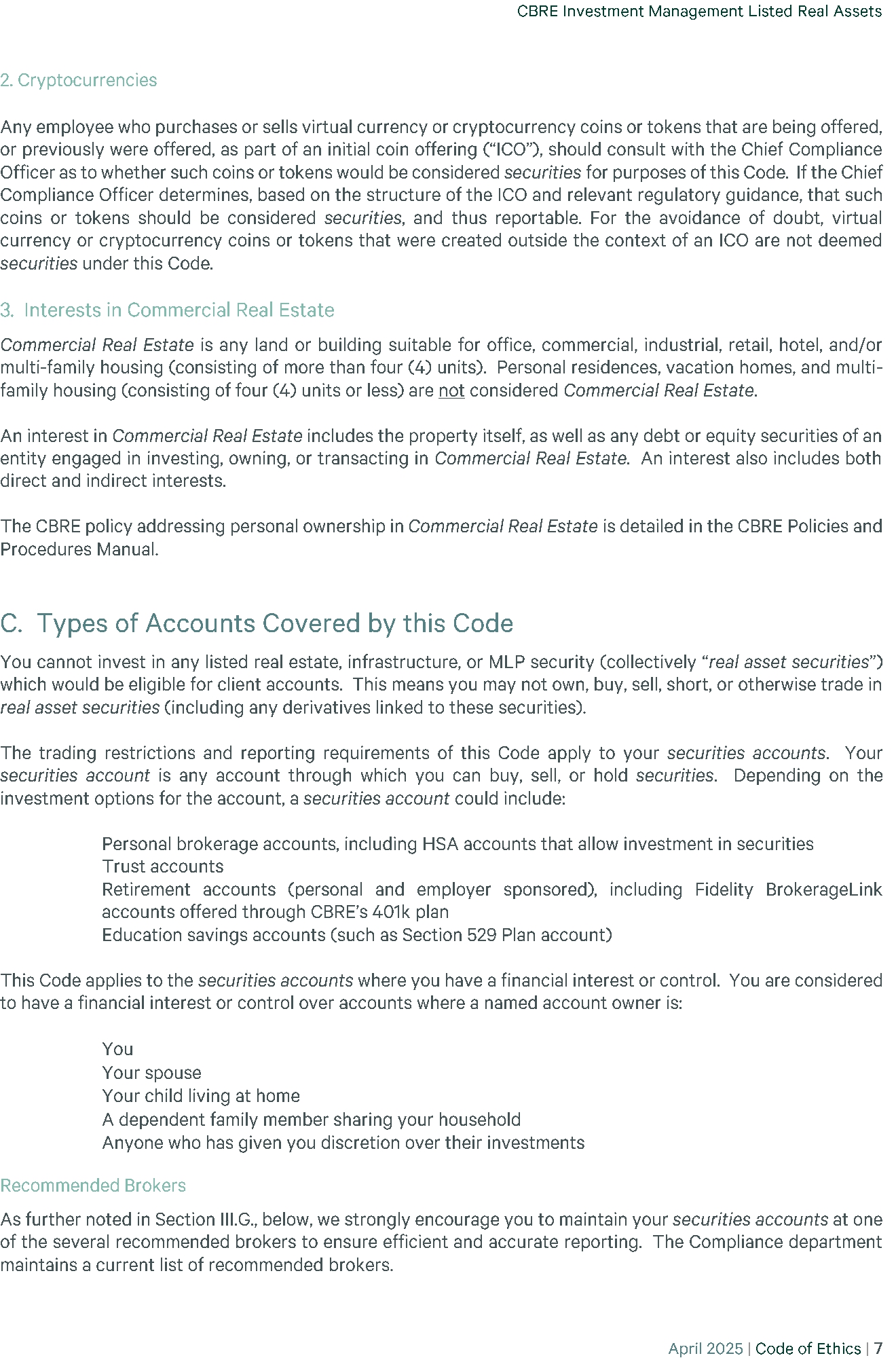| 23 | (P)(2) CBRE - CODE OF ETHICS 2025-04 | EX-99 | 35.8 KB | Open in viewerDownload |